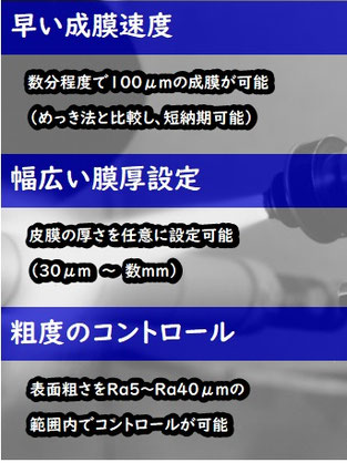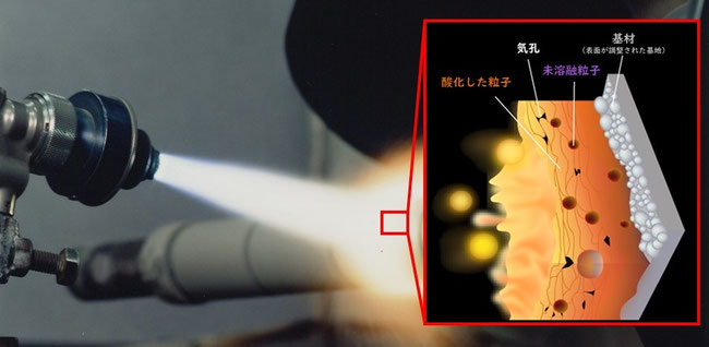 溶射は、溶射材料を熱で溶かし、その溶融物を成膜したい部材(基材)の表面に投射して、皮膜を形成する表面加工技術の一種である。